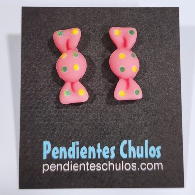 Agrega un toque de dulzura y diversión a tu estilo con nuestros encantadores pendientes caramelo en color rosa con puntos de colores. Estos pendientes te transportarán a un mundo de golosinas y alegría, llenando tus días de color y felicidad.